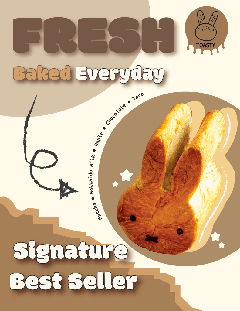 A visual identity was created for the fake bakery, including the logo, color palette, typography, and playful graphic style used across all three posters.